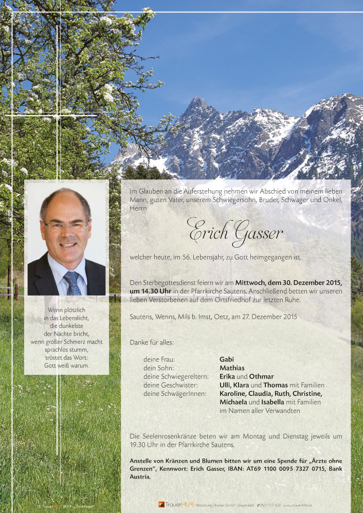 Wir fühlen uns in dieser schweren Stunde mit Euch in herzlicher Anteilnahme verbunden.Gott gebe Euch Trost und Kraft.29.12.2015 09:28 - Hermann Gasser-Halbeisen
