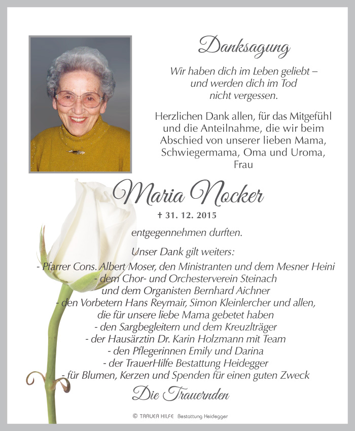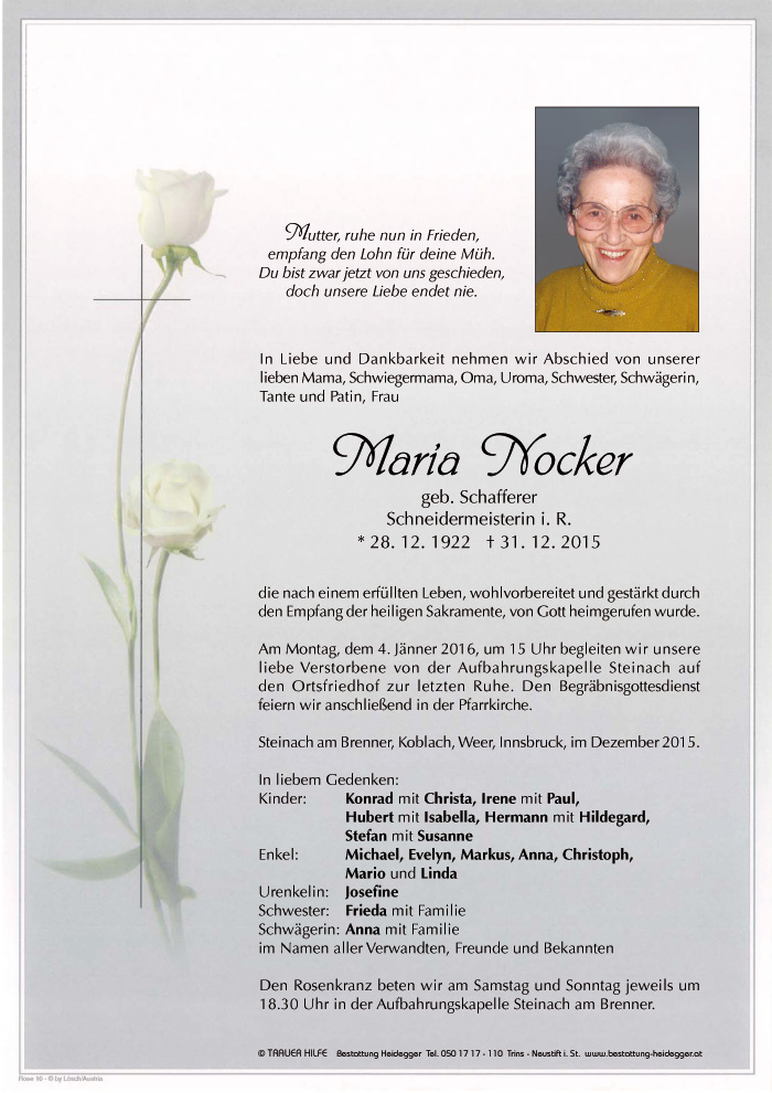 Bestattung wurde durchgeführt von: Karl Neurauter Karl Neurauter Bestattung Heidegger Brennerstraße 69 6150 - Steinach am Brenner Tel.: 05275 5211 zum Bestatter