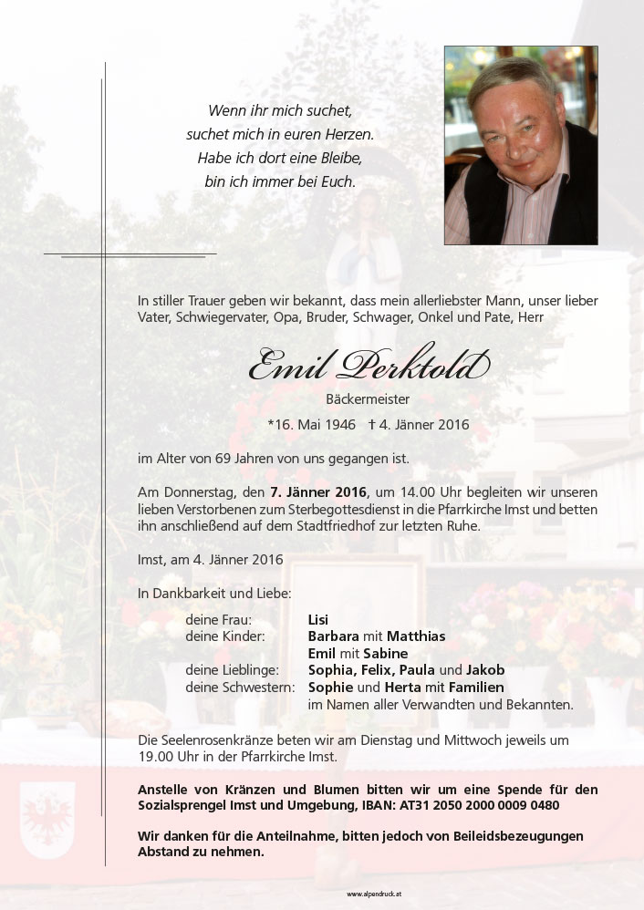 Liebe Frau Perktold, liebe Barbara, sehr geehrte Trauerfamilie !
